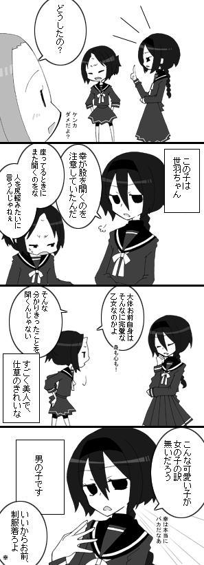 出席番号5番 黒須 世羽(くろす よはね) 容姿端麗で仕草や作法も完璧、自他ともに厳しい…と 弱点皆無に限りなく近い、男の子。 将来の夢は、神。